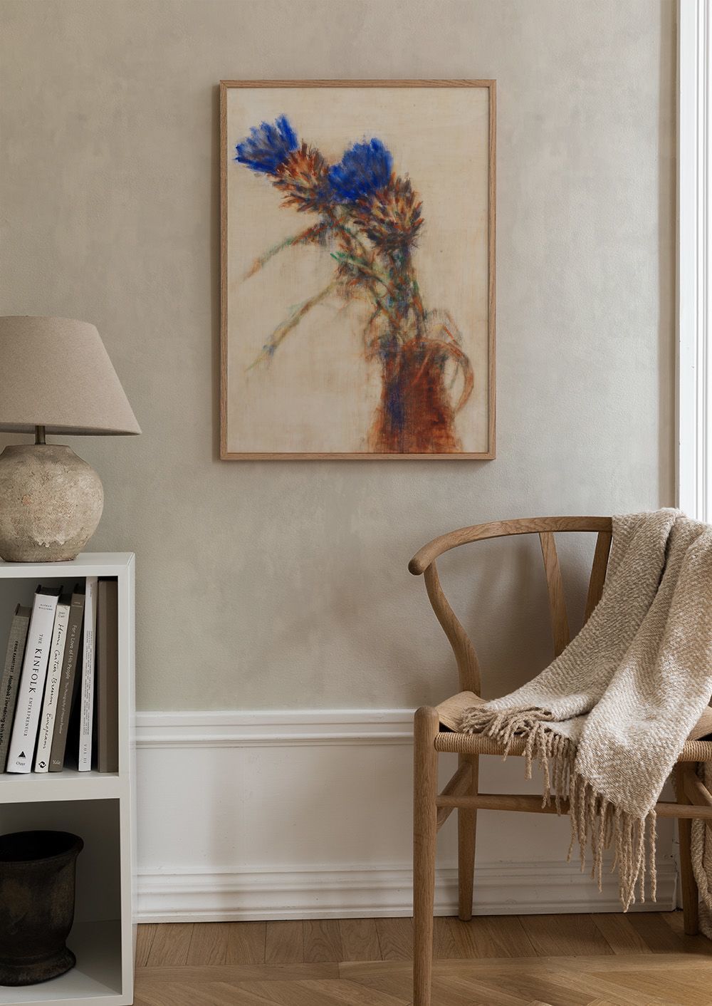 Alkaen 7,77 €Pehmeä sinisten kukkien juliste ruskeassa maljakossa. Taideteoksessa on kauniit siniset kukat punaisilla ja oransseilla sävyillä. Vaaleanruskea tausta luo rauhallisen tunnelman.