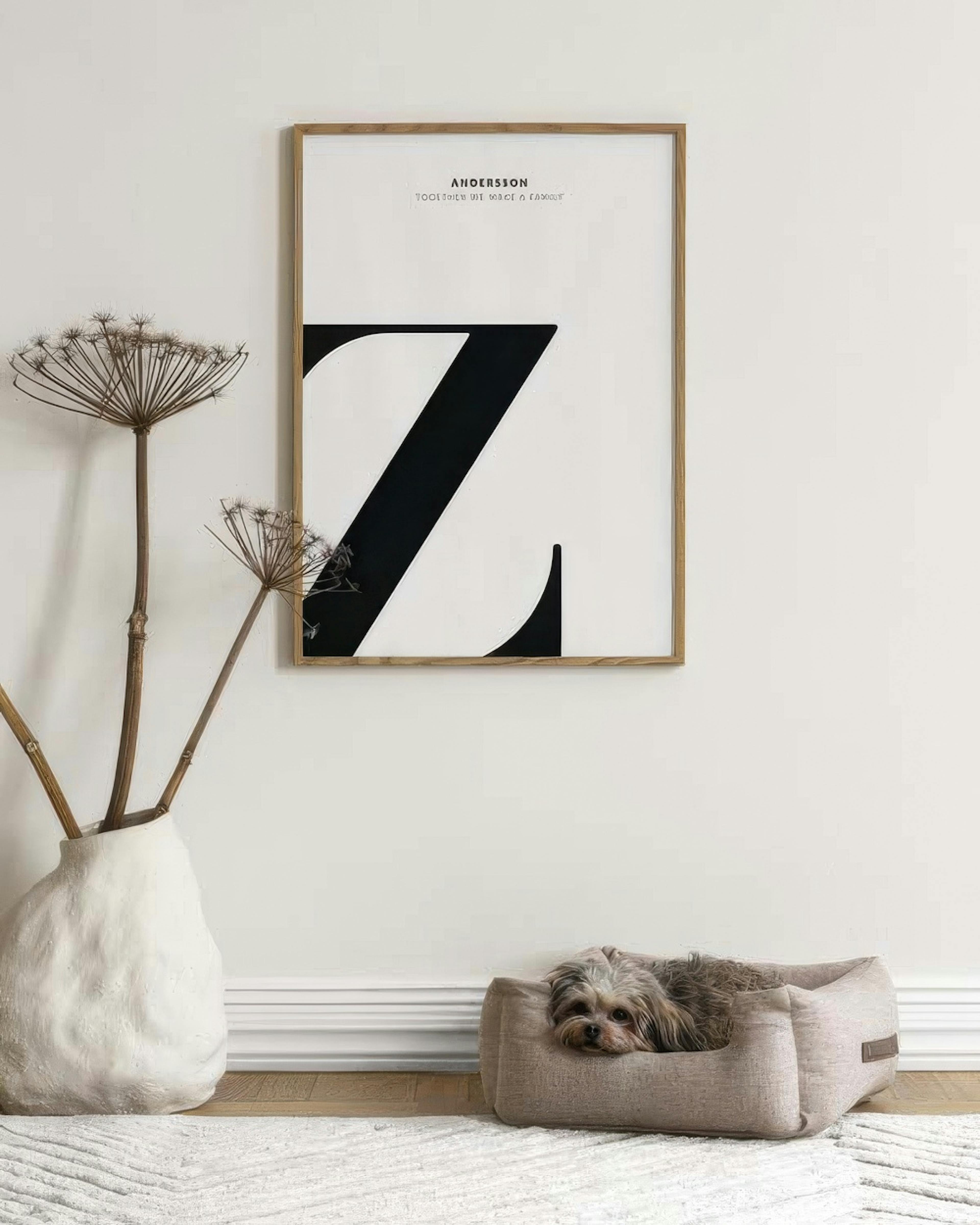 Perheen persoonallinen printti 'z'-kirjaimella mustavalkoisena