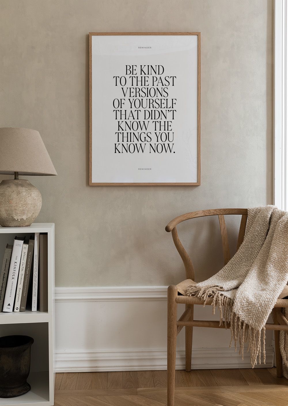Alkaen 7,77 €Mustavalkoinen juliste, jossa lukee "Ole ystävällinen menneisyyden versioillesi, jotka eivät tienneet asioita, jotka tiedät nyt". Kaunis muistutus itsesi hyväksymisestä.